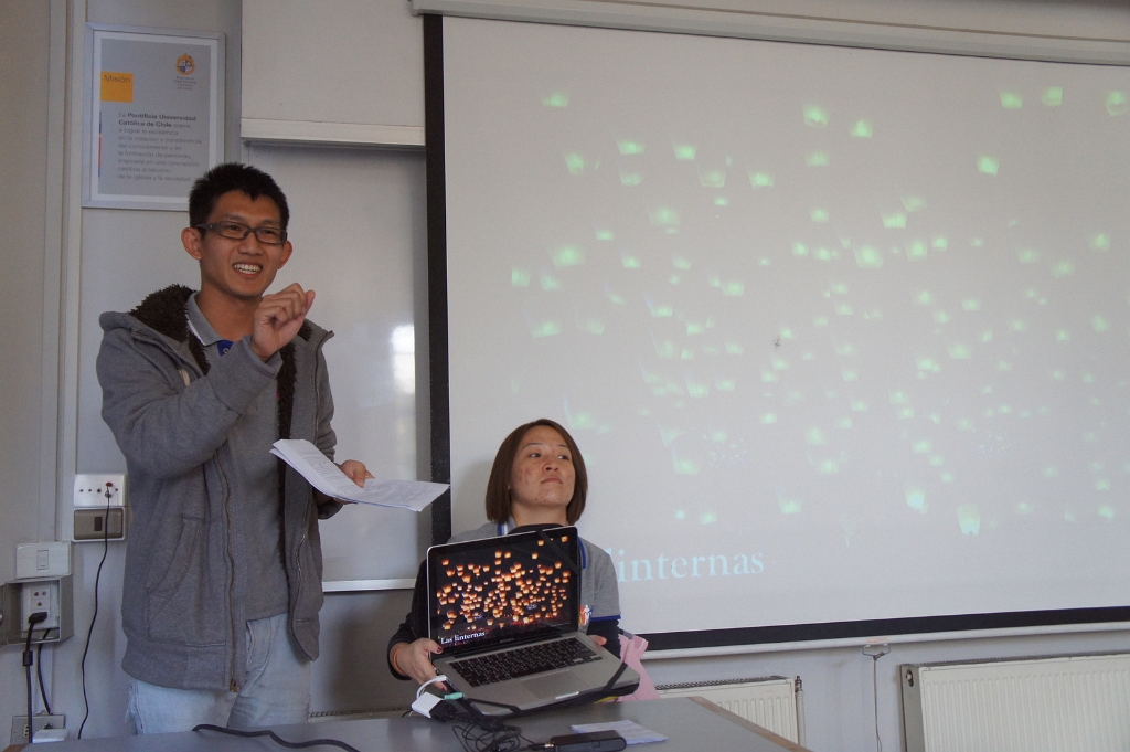 前往天主教大學 San Joaquín 校區,表演台灣與台大介紹,以及布袋戲介紹與實做活動